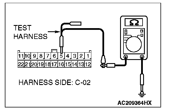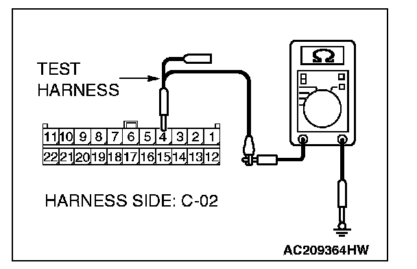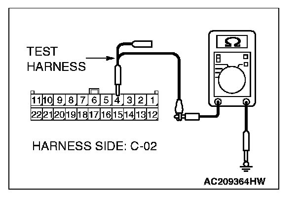 1. Disconnect joint connector (3) C-02, and measure the resistance at the wiring harness side of joint connector (3) C-02.