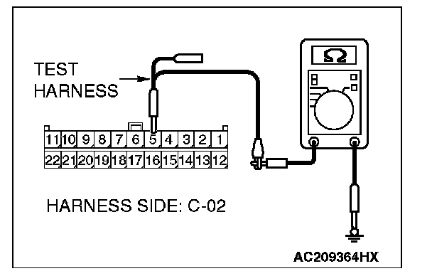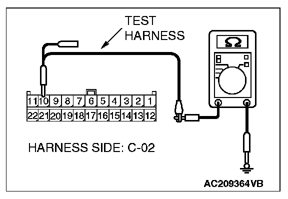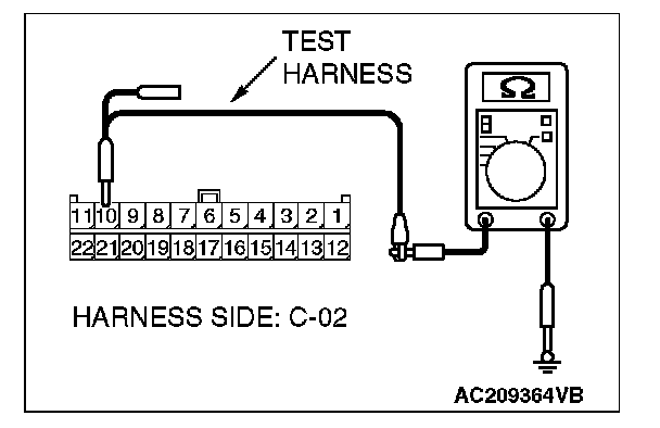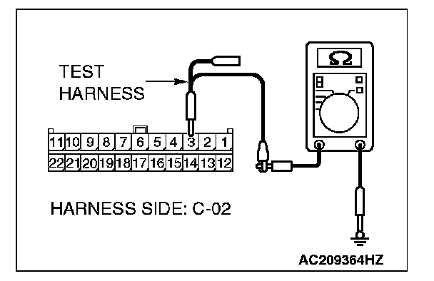 1. Disconnect joint connector (3) C-02 and ETACS-ECU connector C-218, and measure the resistance at the wiring harness side of joint connector (3) C-02.