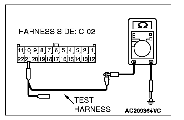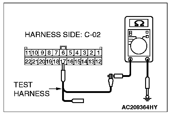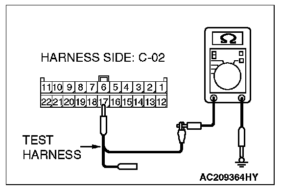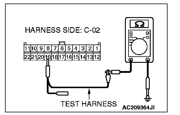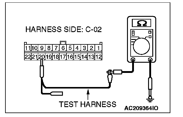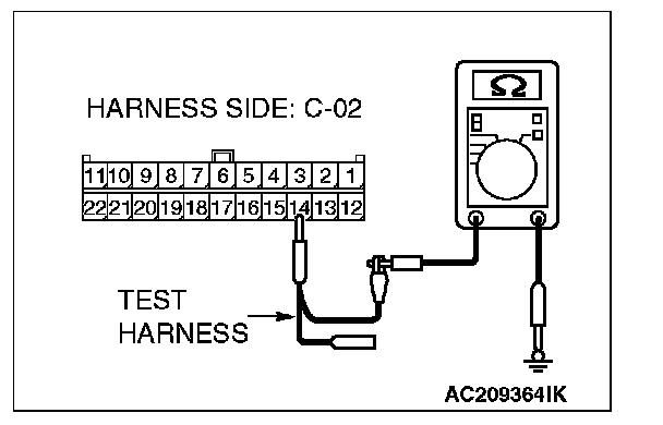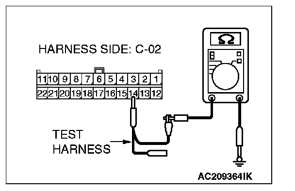 1. Disconnect joint connector (3) C-02, and measure the resistance at the wiring harness side of joint connector (3) C-02.