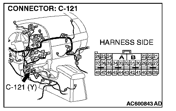STEP 45. Check SRS-ECU connector C-121 for loose, corroded or damaged terminals, or terminals pushed back in the connector.