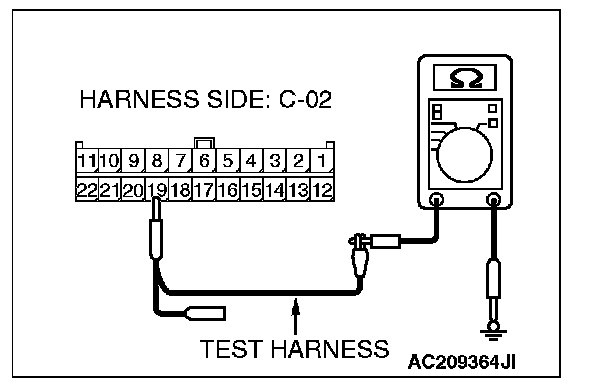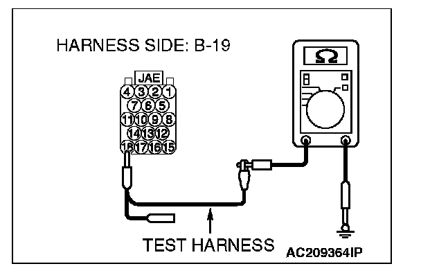 4. Measure the resistance between joint connector (3) terminal 19 and body ground.