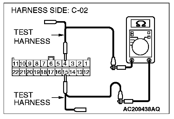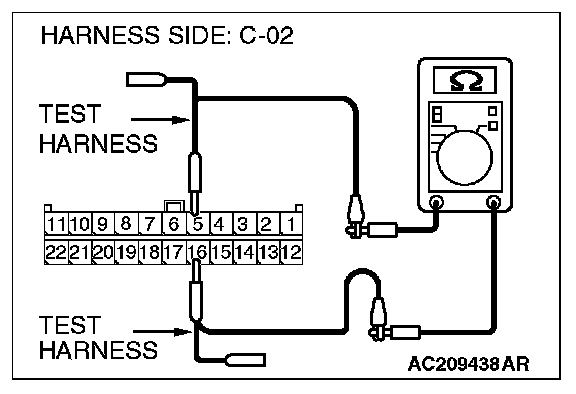 1. Disconnect joint connector (3) C-02, and measure the resistance at the wiring harness side of joint connector (3) C-02.