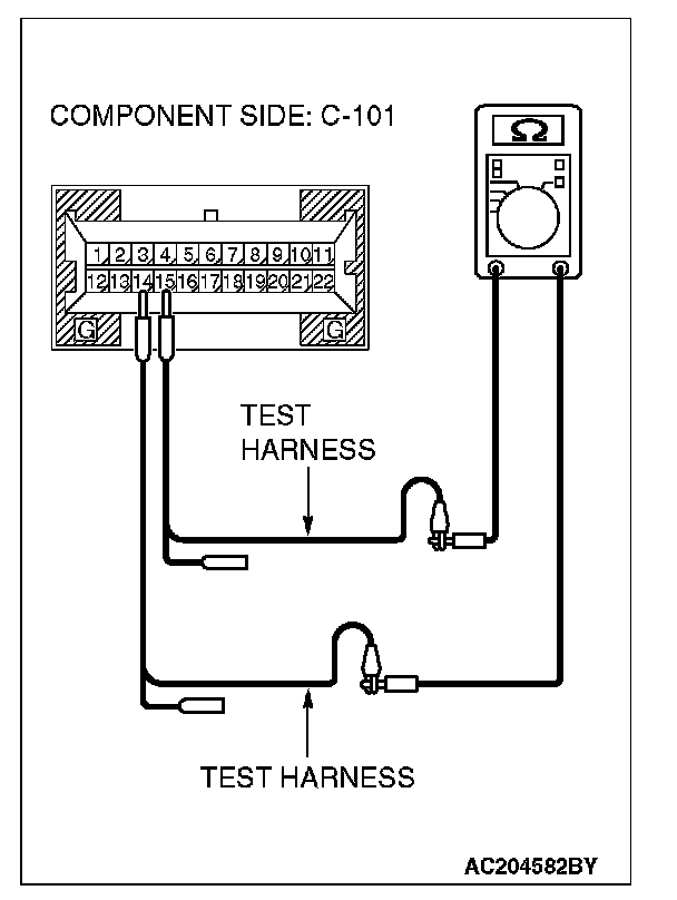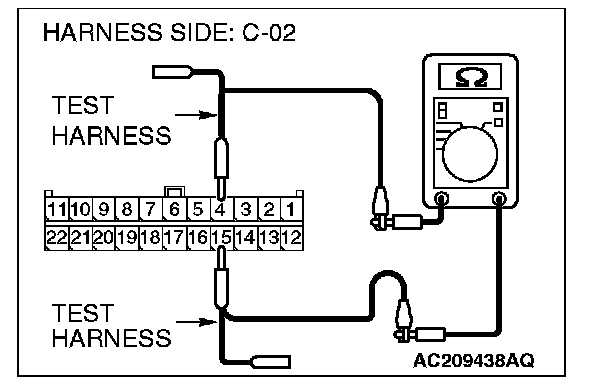 1. Disconnect A/C-ECU connector C-15, and measure the resistance at the component side of A/C-ECU connector C-15.