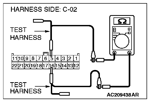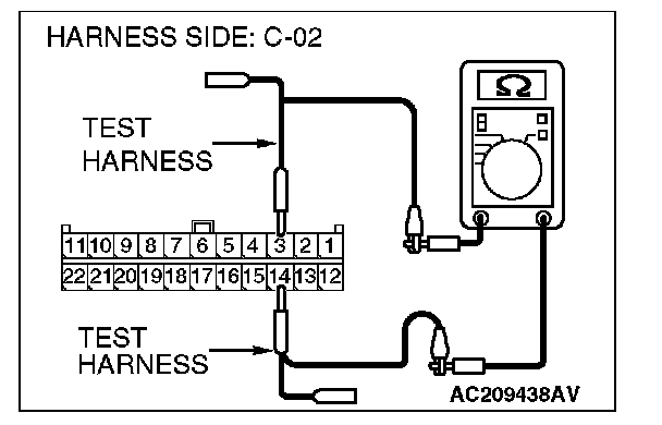 1. Disconnect joint connector (3) C-02 and ETACS-ECU connector C-218, and measure the resistance at the wiring harness side of joint connector (3) C-02.