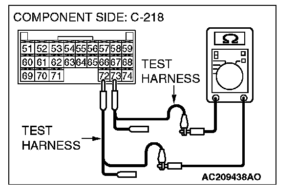 1. Disconnect ETACS-ECU connector C-218, and measure the resistance at the component side of ETACS-ECU connector C-218.