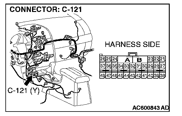 STEP 17. Check SRS-ECU connector C-121 for loose, corroded or damaged terminals, or terminals pushed back in the connector.