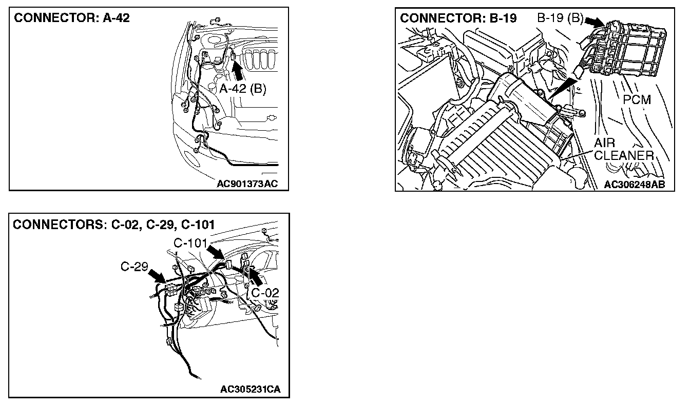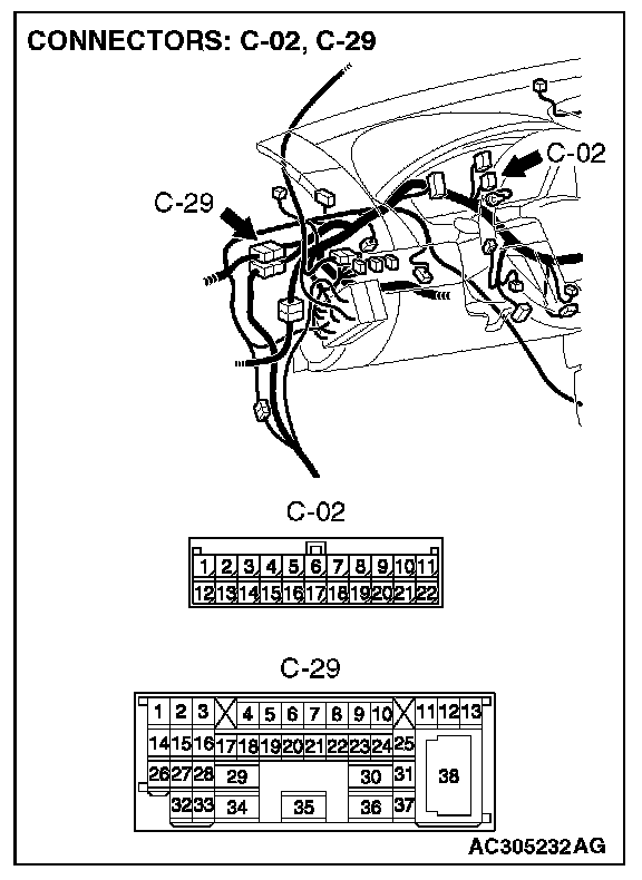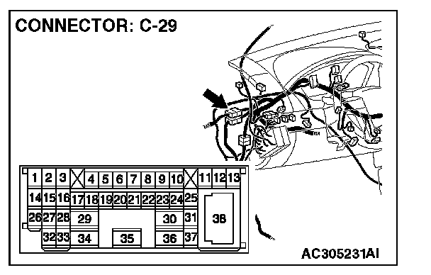 STEP 1. Check intermediate connector C-29 for loose, corroded or damaged terminals, or terminals pushed back in the connector.