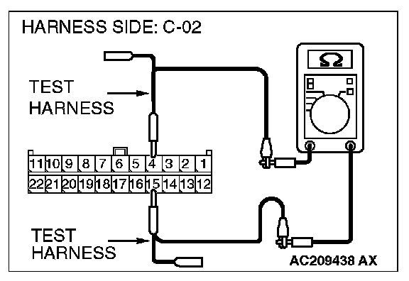 1. Disconnect joint connector (3) C-02, and measure the resistance at the wiring harness side of joint connector (3) C-02.
