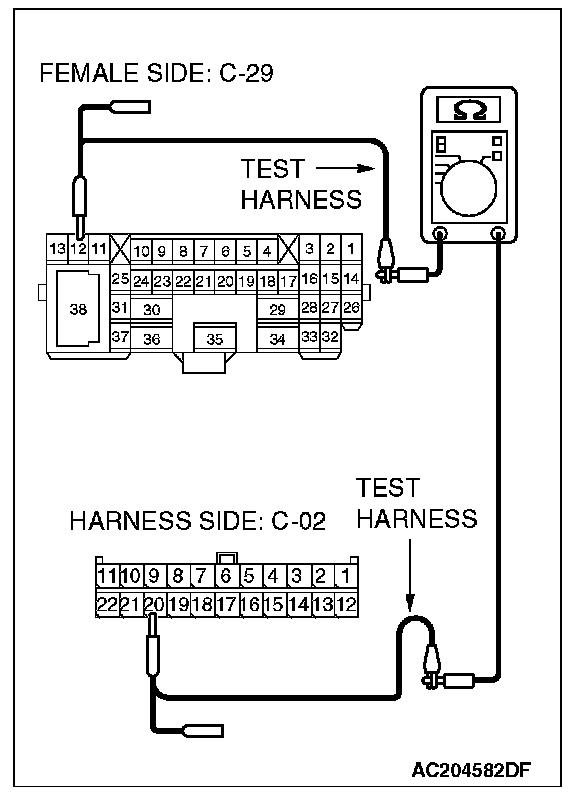 1. Disconnect intermediate connector C-29, and measure the resistance at its female side connector (instrument panel wiring harness side).
