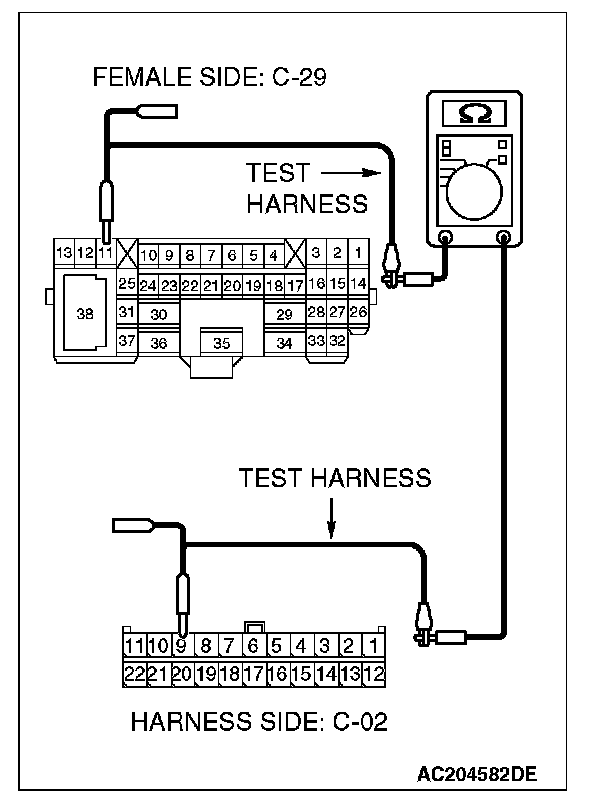 1. Disconnect intermediate connector C-29, and measure the resistance at the male side (at front wiring harness side).