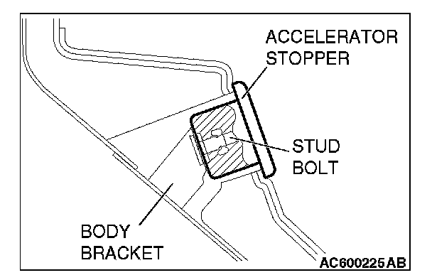2. Install the accelerator stopper securely by turning it clockwise until its underside contacts with the body bracket as shown in the figure.