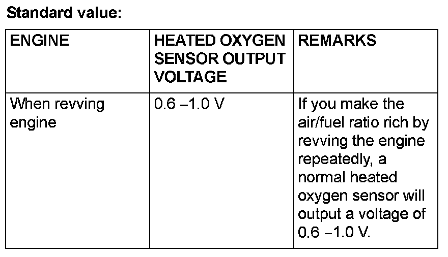 8. If the output voltage is not within the standard value, replace the heated oxygen sensor.