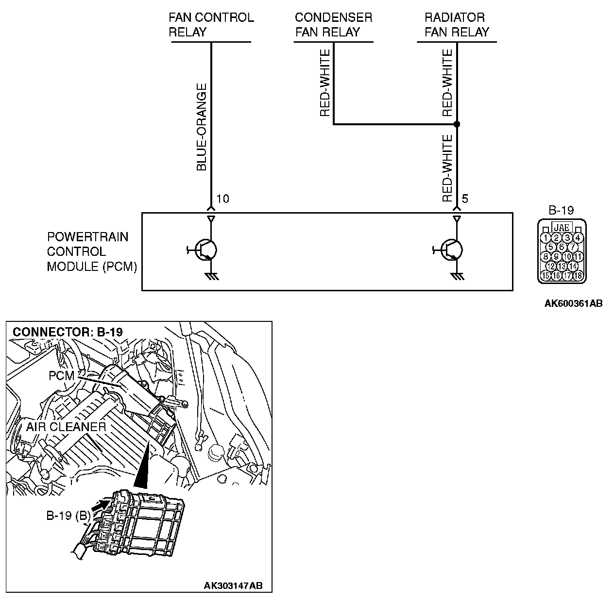 - When the terminal No.10 is grounded by the jumper cable, the radiator and condenser fans should run.