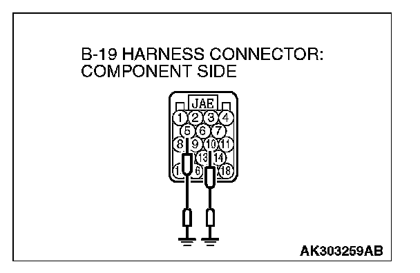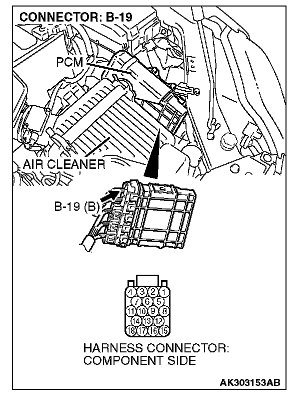 STEP 1. Check harness connector B-19 at PCM for damage.