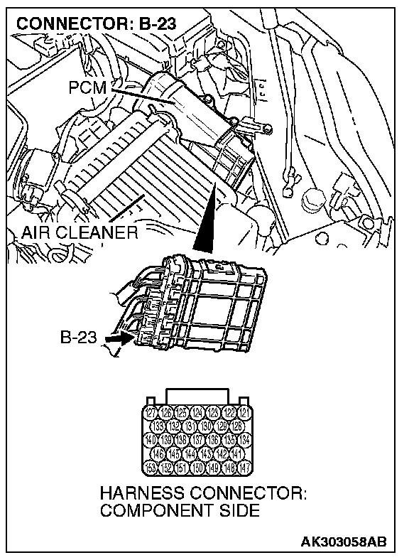 STEP 5. Check harness connector B-23 at PCM for damage.