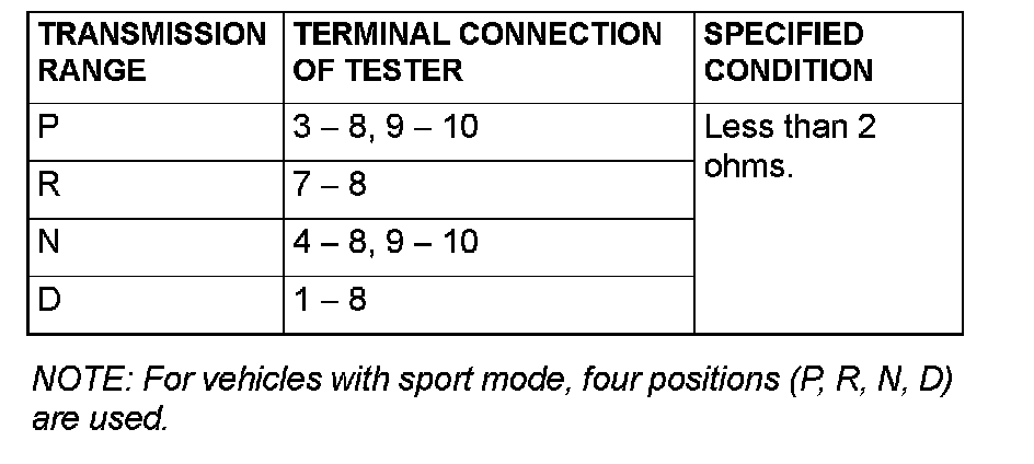 TRANSMISSION RANGE SWITCH CHECK