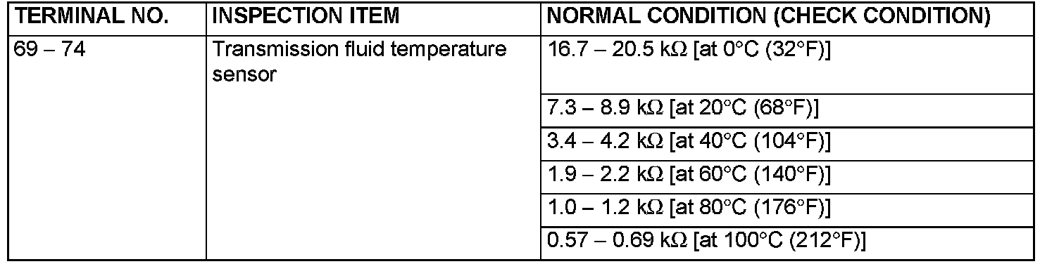 PCM TERMINAL RESISTANCE AND CONTINUITY INSPECTION CHART