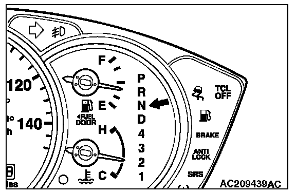 If the "N" range light is flashing, the transmission fluid temperature is high. (It flashes when the fluid is approximately 125°C or more and goes off when the fluid is approximately 115°C or less)