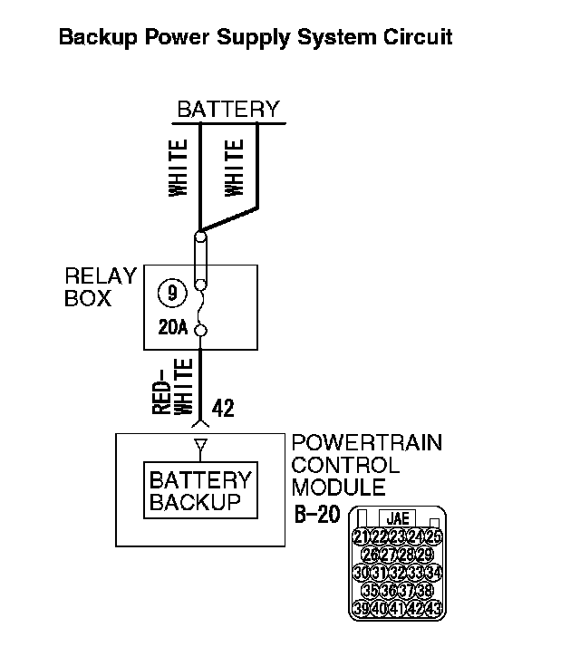 STEP 4. Check the harness for open circuit between PCM connector B-20 terminal 42 and battery.