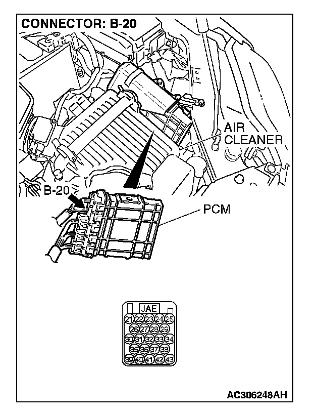 STEP 3. Check PCM connector B-20 for loose, corroded or damaged terminals, or terminals pushed back in the connector.