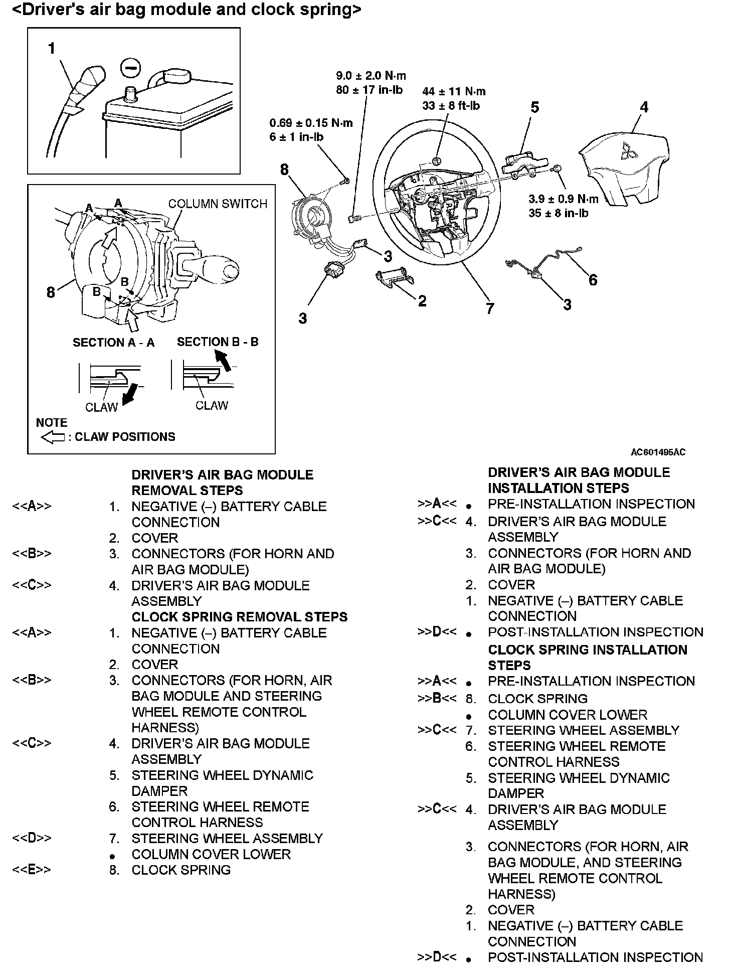 AIR BAG MODULES AND CLOCK SPRINGREMOVAL AND INSTALLATION