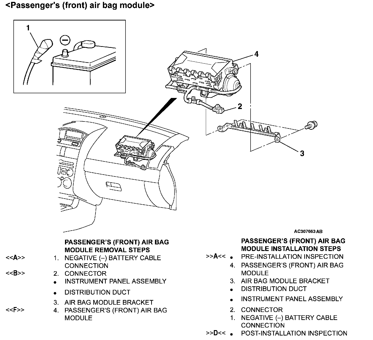 [[F]] PASSENGER'S (FRONT) AIR BAG MODULE REMOVAL