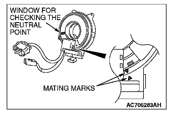 WARNING: Ensure that the clock spring's mating marks are properly aligned. If not, the steering wheel may not rotate completely during a turn, or the flat cable in the clock spring could be damaged, This would prevent normal SRS operation and possibly cause serious injury to the driver.