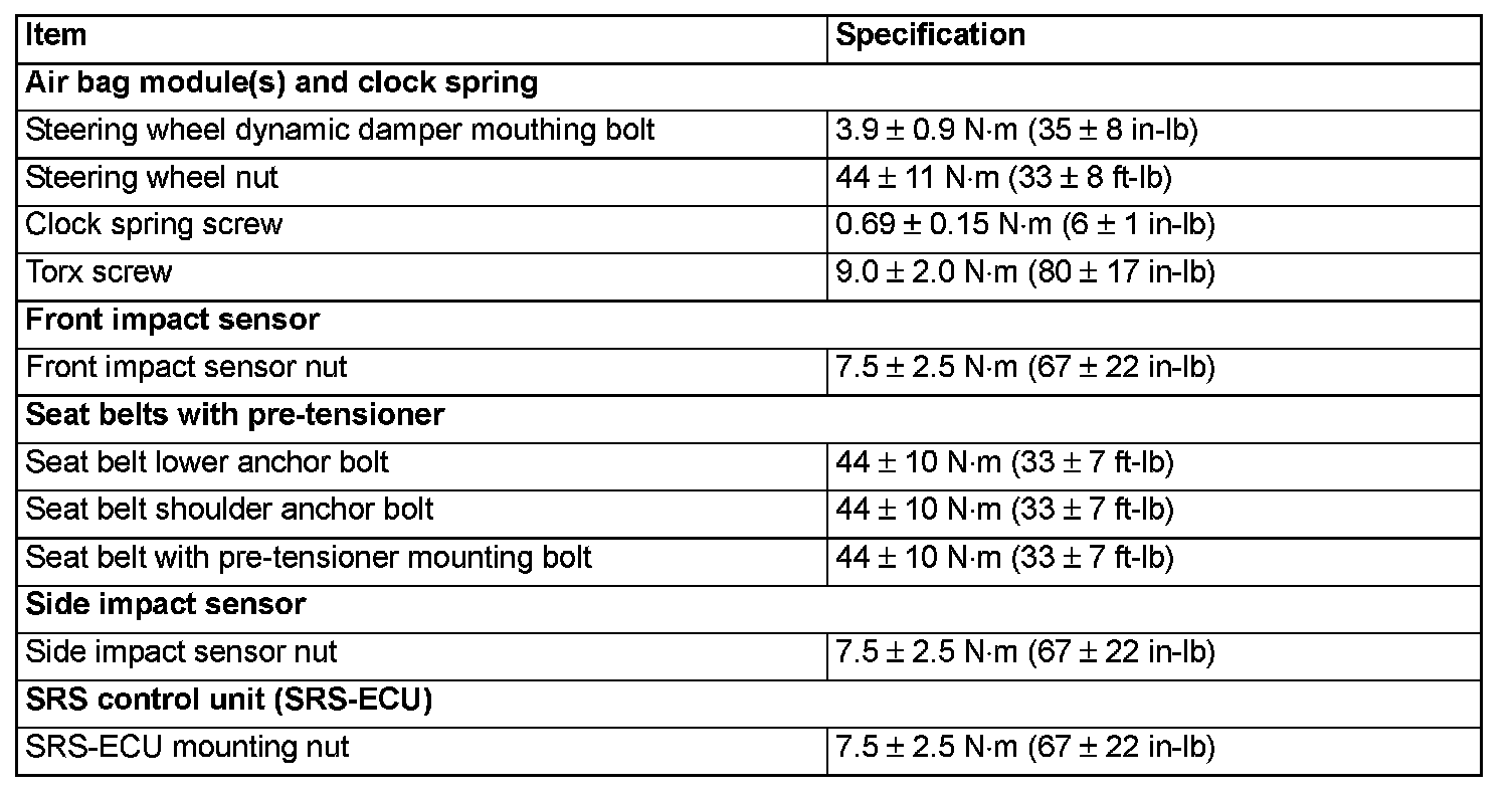 Fastener Tightening Specifications: