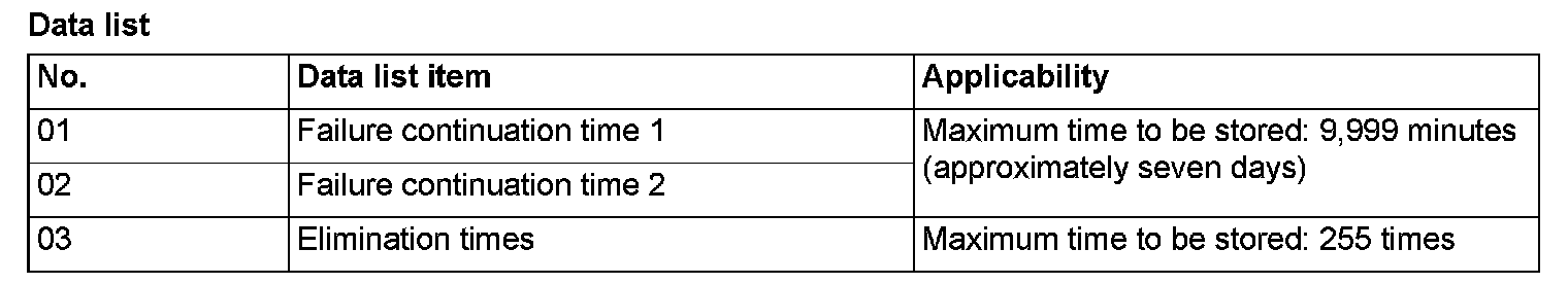 3. Read the data list (fault duration and how many times memories are erased), using scan tool MB991958.