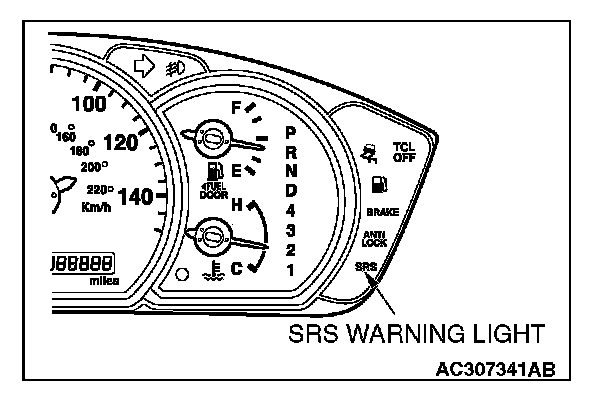 1. The SRS warning light does not illuminate as described above.