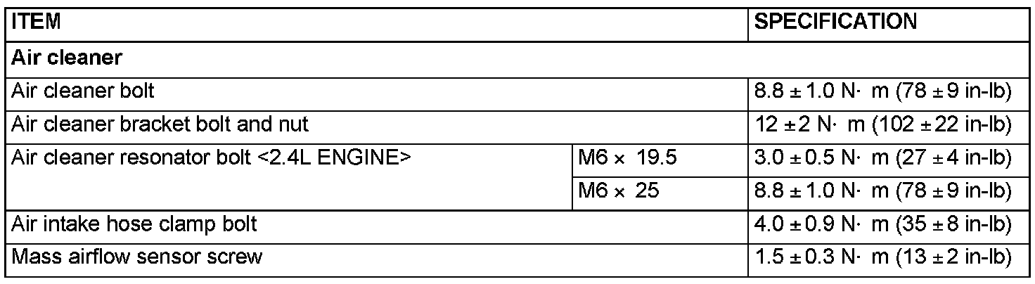 Fastener Tightening Specifications - Air Cleaner: