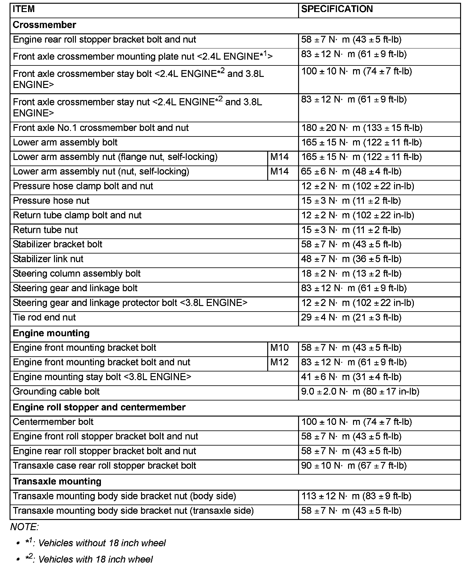 FASTENER TIGHTENING SPECIFICATIONS