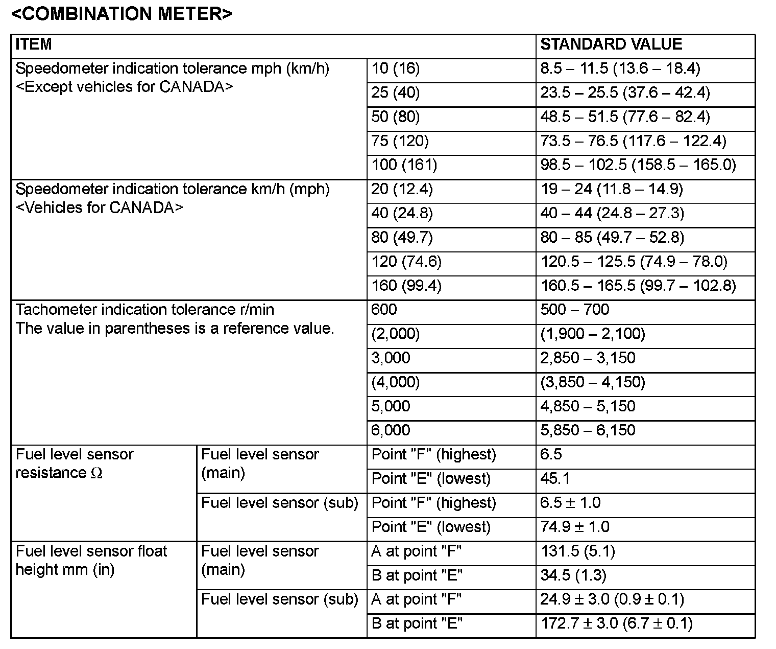 Combination Meter: