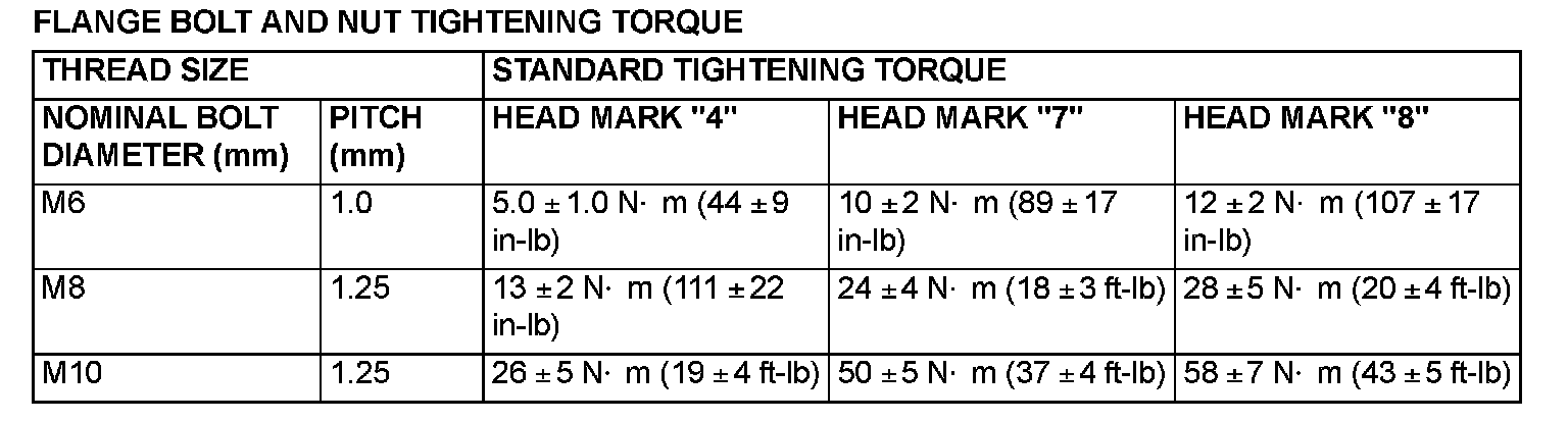 FLANGE BOLT AND NUT TIGHTENING TORQUE