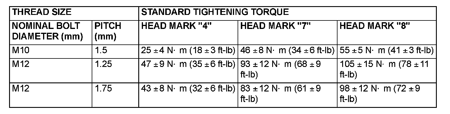TIGHTENING TORQUEEach torque value in the table is a standard value for tightening under the following conditions.