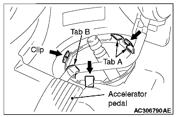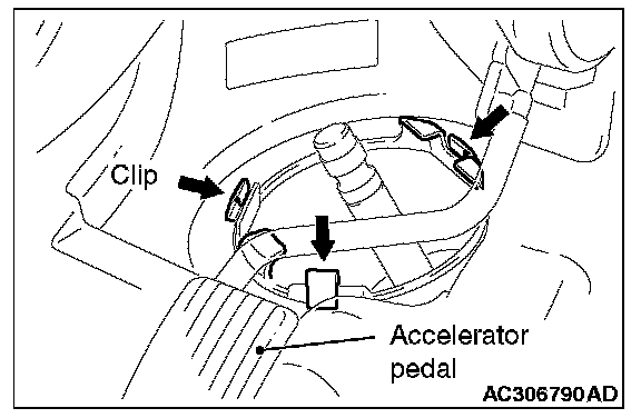 4. Check that it has been secured by pressing down the tip of the clips by your finger. Also check that the steering column dash panel cover is installed securely to the steering gear.