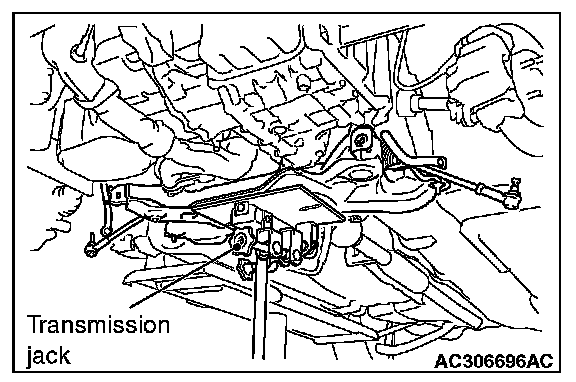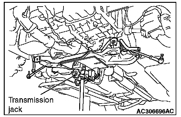 2. Use a transmission jack to hold the crossmember, and then remove the crossmember mounting nuts and bolts.