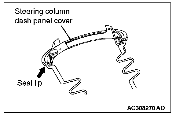 When securing the steering column dash panel cover to the body panel, be careful that the seal lip does not move backwards.