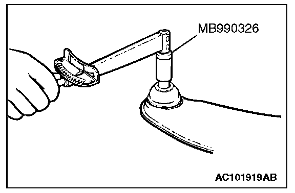 1. After shaking the ball joint stud several times, in order to make the ball joint turn smoothly, install the nut to the stud and use special tool MB990326 to measure the turning torque of the ball joint.