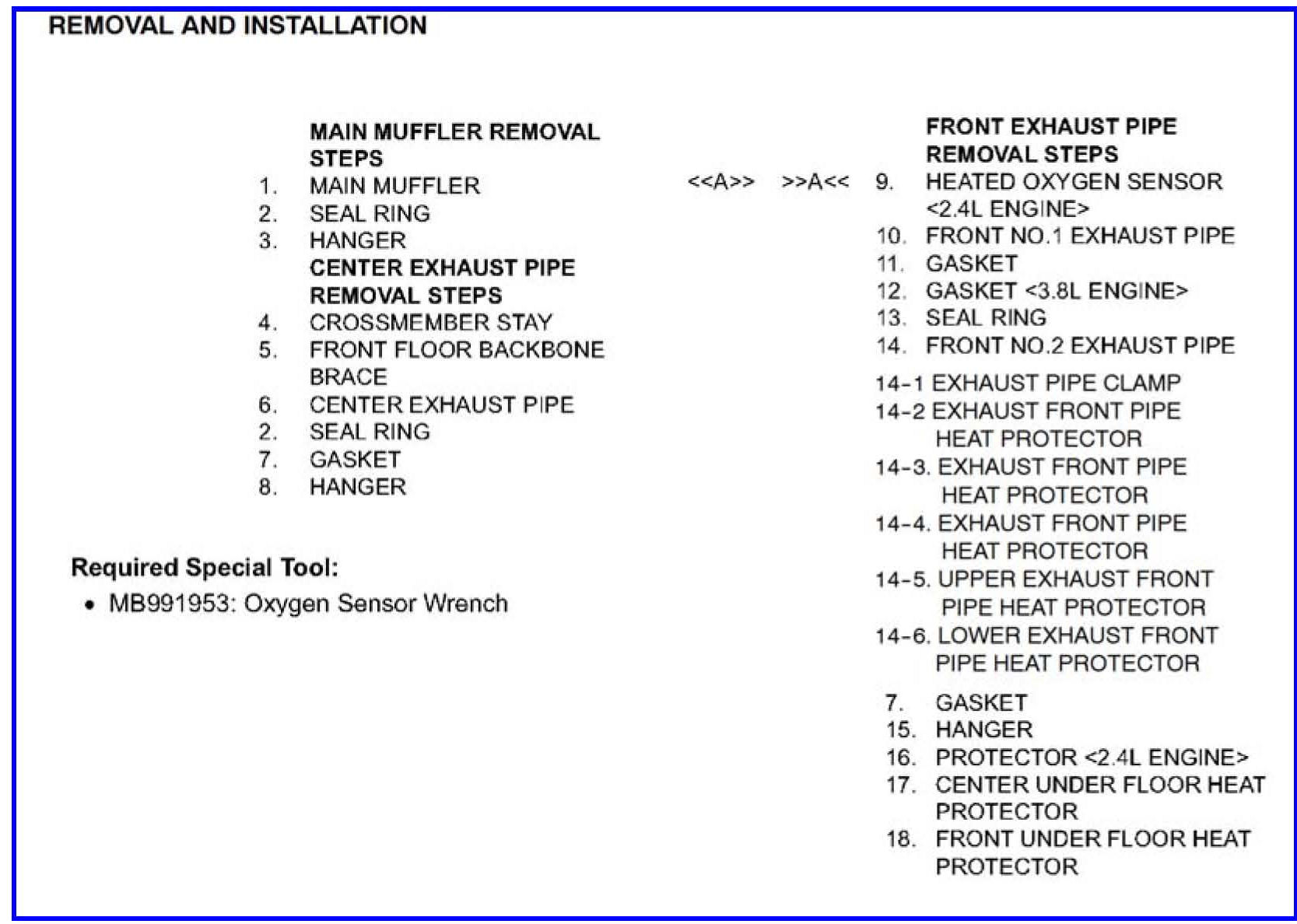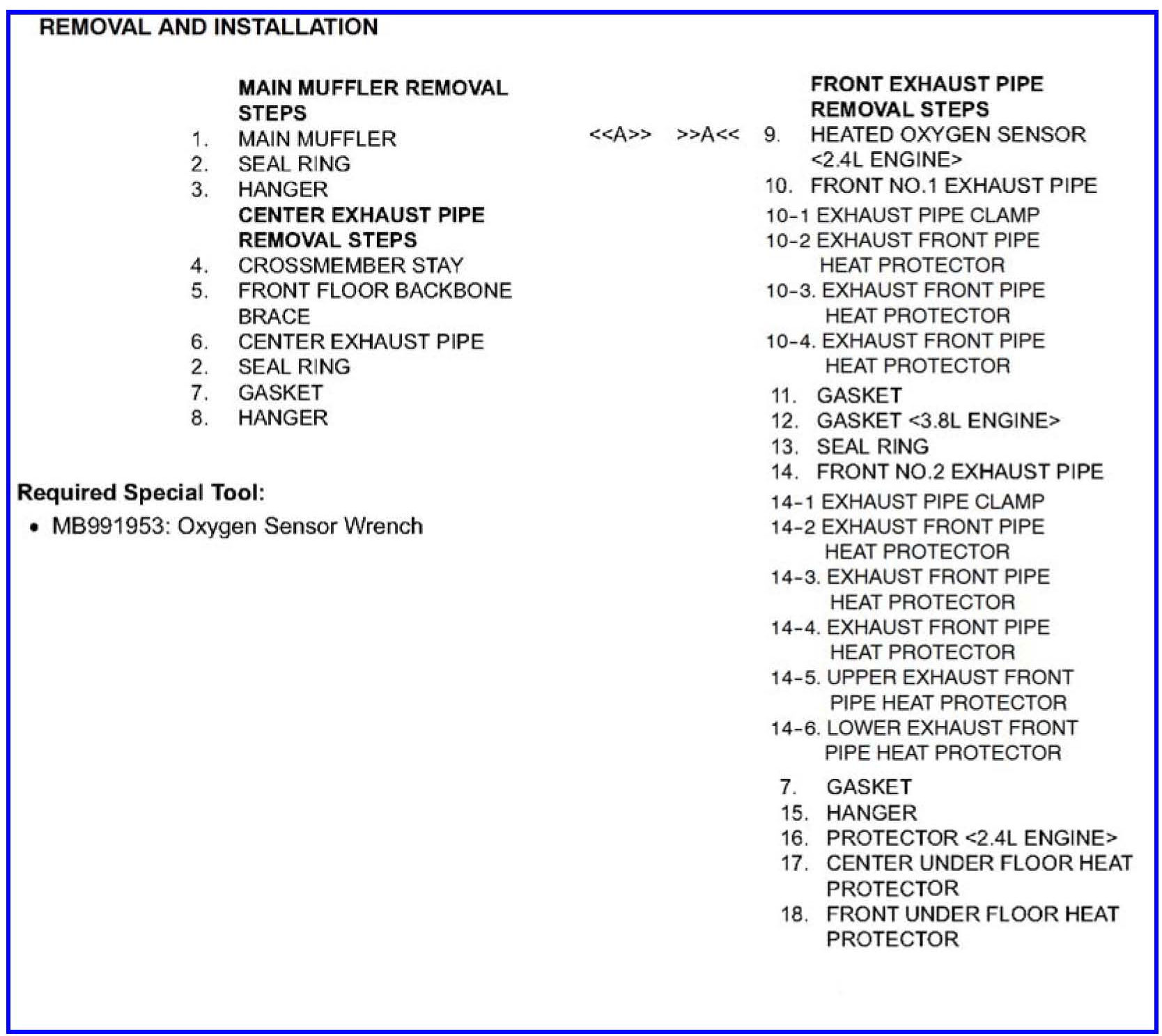 EXHAUST PIPE SERVICE PROCEDURES - SERVICE MANUAL REVISION