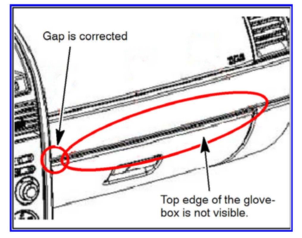 Some affected vehicles may have a gap at the upper left corner of the glove box and the dash.
