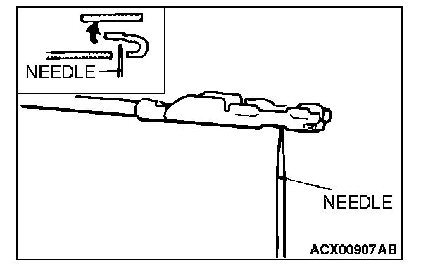 Follow the steps below to avoid causing poor connector contact and/or reduced waterproof performance of connectors when checking continuity and/or voltage at waterproof connectors.