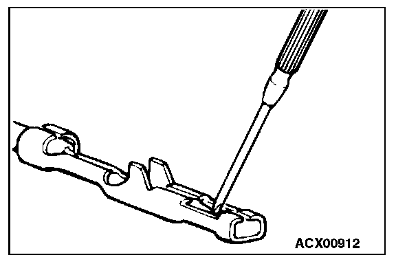 3. Press the contact point to the male terminal down by holding a screwdriver [1.4 mm (0.06 inch) width] as shown in the figure.