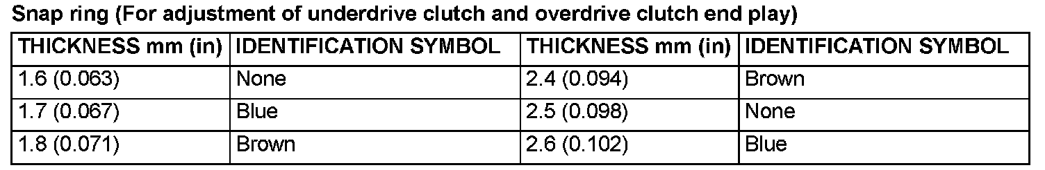 Snap ring (For adjustment of underdrive clutch and overdrive clutch end play)