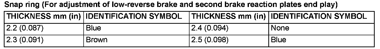 Snap ring (For adjustment of low-reverse brake and second brake reaction plates end play)