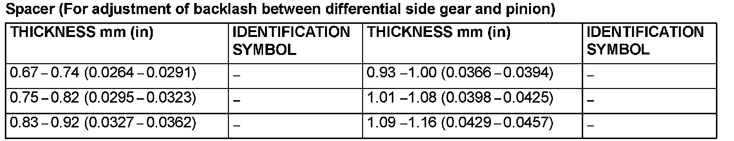 Spacer (For adjustment of backlash between differential side gear and pinion)