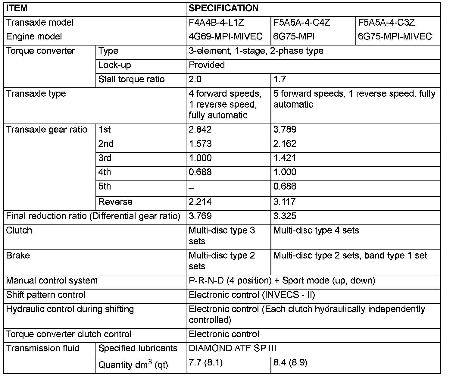 AUTOMATIC TRANSAXLEGENERAL DESCRIPTION
