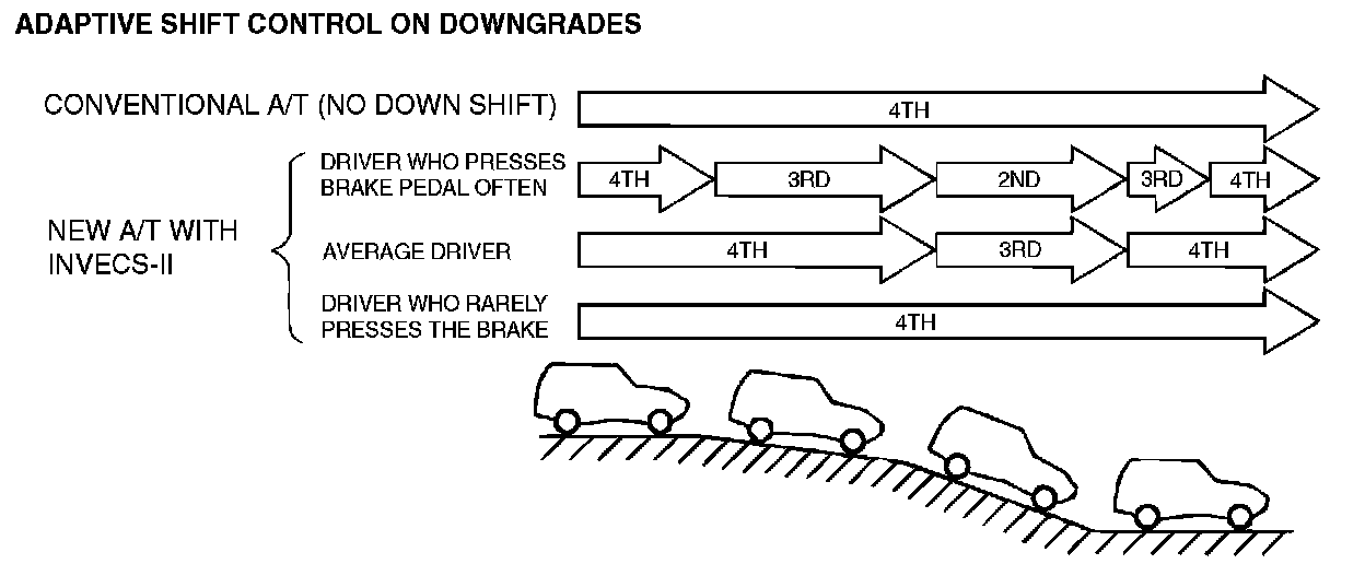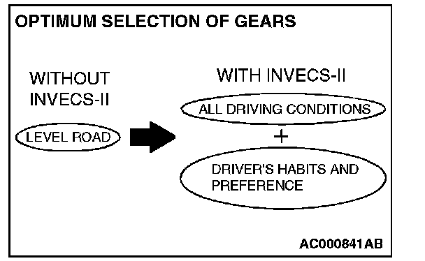 ^ INVECS-II features "Optimum Shift Control," which provides shift timing the average driver perceives to be the optimum timing under any road conditions. "Adaptive Shift Control" adjusts shift timing to match the driving habits and preferences of individual drivers.