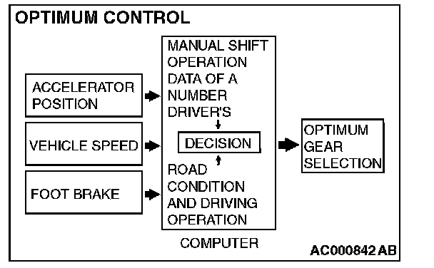 1. The shift patterns found satisfying by the typical driver for all ranges of driving are stored in the computer's memory. The computer uses this data to analyze road conditions and the driver's style of operation, and then outputs the optimal shift patterns stored in its memory to best match the conditions.
