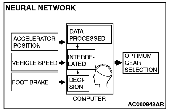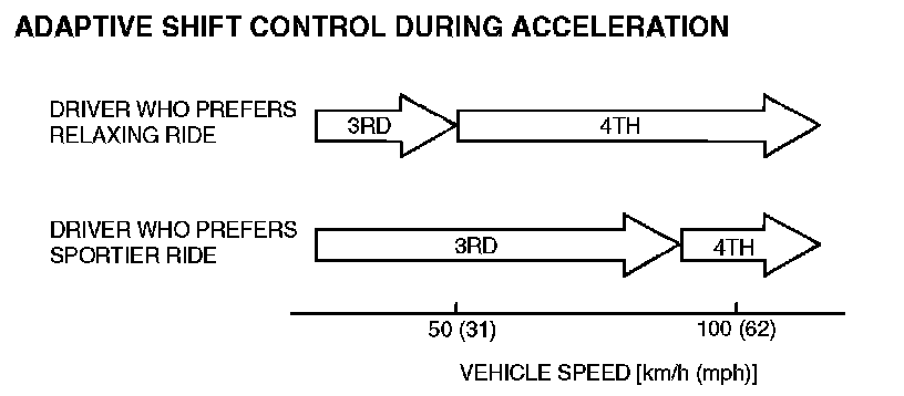 1. The computer learns the driving habits and preferences of each individual driver by processing driving data on engine output, tire load, foot brake operation, etc. It then uses this data to adjust shift timing to best suit the driver's style.